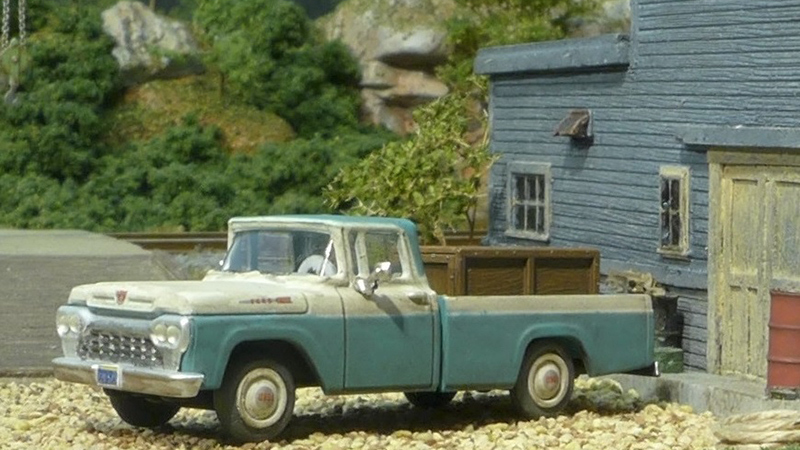 This photo is a Classic Metal Works 1960 Ford F-100 1/2-Ton pickup truck that Jeff Black posed on his diorama. For added realism he applied a light weathering paint wash and Dullcoat, replaced the original headlights with MV Products headlight lenses, and attached a Howard's Hobby license plate.