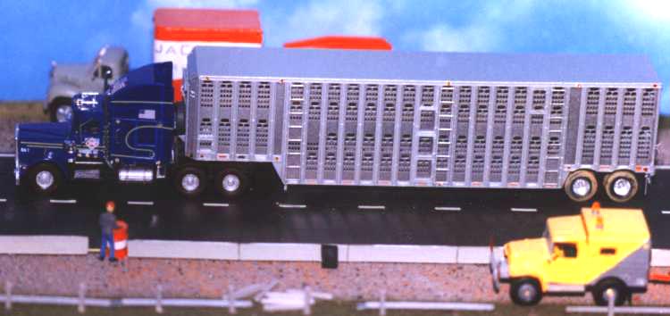 This cattle hauler was modeled by G. Sauter. The tractor is an Athearn