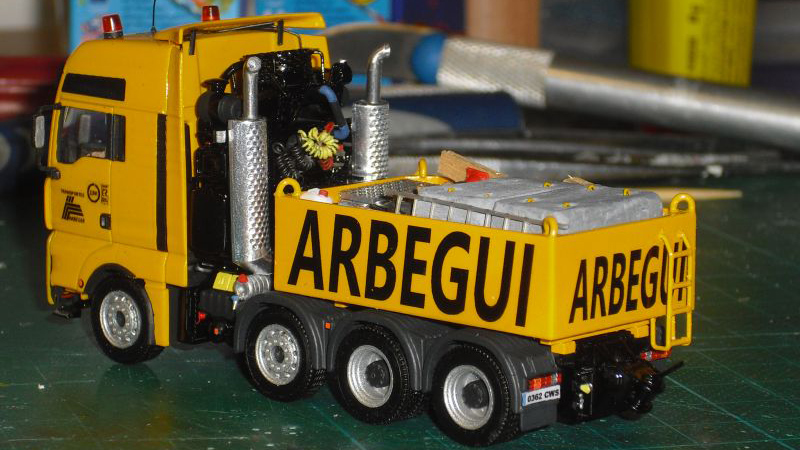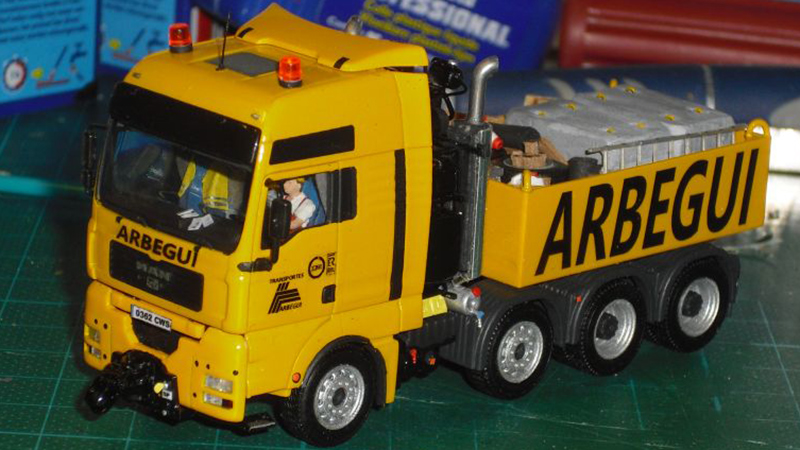 Martin Mayer built this Arbegui MAN using a Herpa model with scratchbuilt ballast box. The model has been repainted and have specially designed and printed decals affixed.