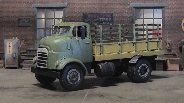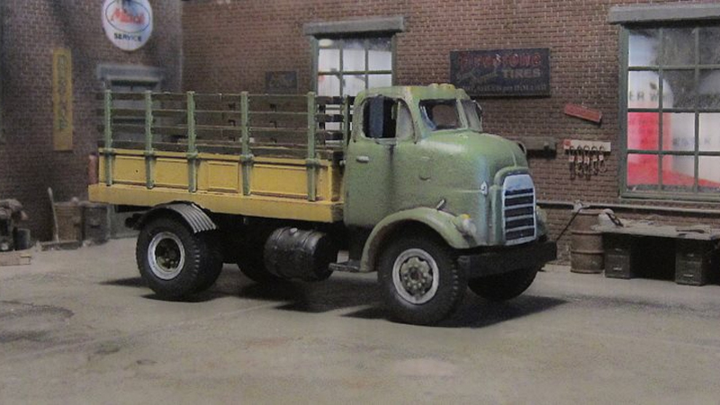 This vintage GMC Cannonball stakebed truck was built by Chester Fesmire using a Sylvan Scale Models resin cab chassis kit with scratchbuilt stakebed body with some very interesting rear fenders.