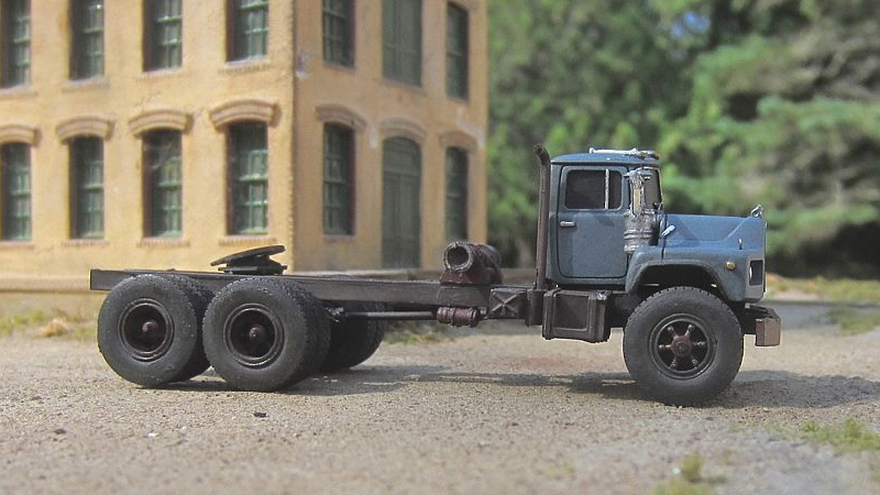 Chester Fesmire built this Mack DM600 heavy truck tractor using a resin kit from Ralph Ratcliffe Models. Chester added a frame mounted winch, also from Ralph Ratcliffe Models.