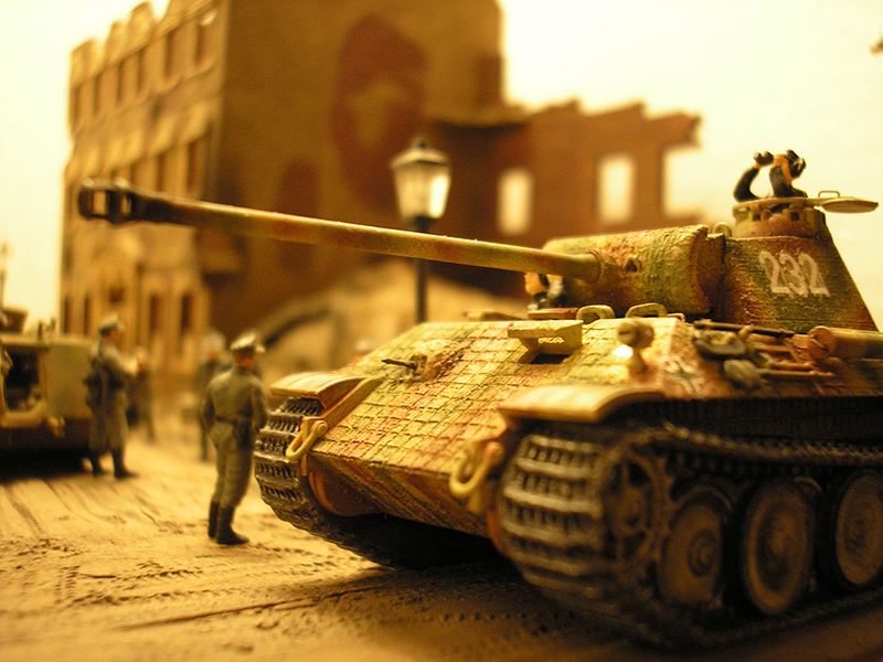 This German WWII Panther A tank was built by Rick Hoskinson. The basis of this model was a Trident kit with lots of extra details and a Zimmerit (anti-mine paste applied in the factory at the time of manufacture) coating made with Tamiya putty.