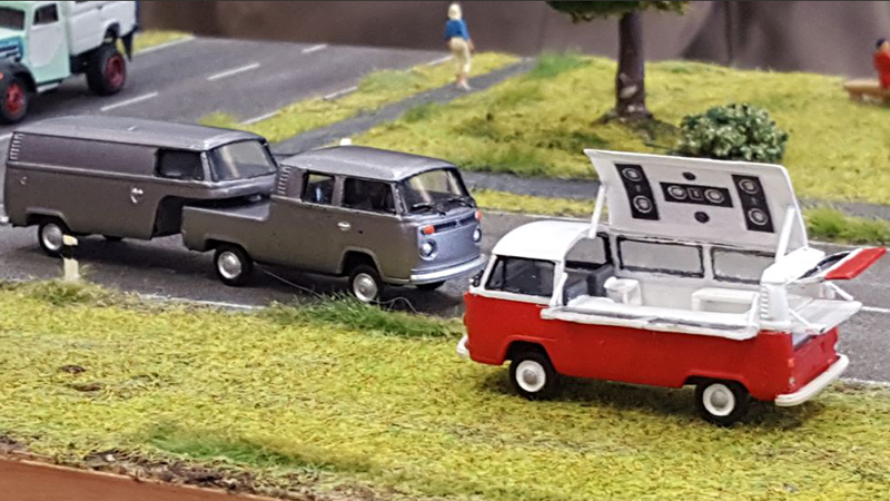 This pair of very creative customized Volkswagen buses built by Thomas Leuchtmann were on display at the 2017 Fulda Meet in Germany held October 21, 2017.
