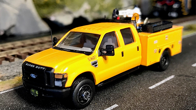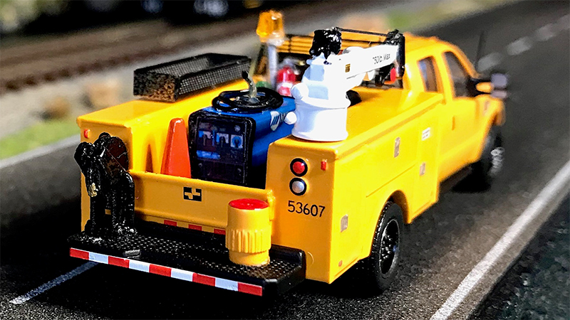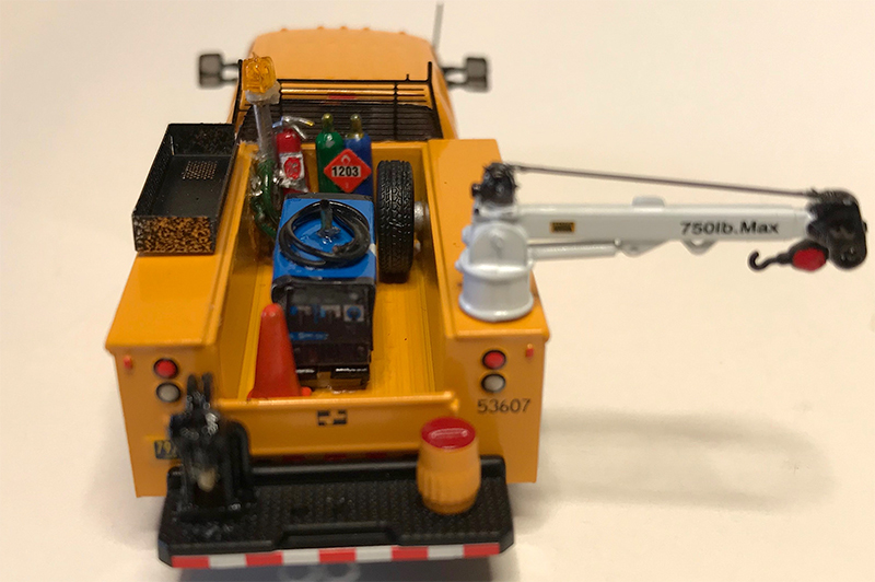 Brent Knutson combined the new River Point Station service body with a River Point Station crew cab Ford F-350 pickup truck. Brent detailed the service body with an RPS jib crane and water cooler, Andy Madden Miniatures photo-etch tool basket and cab protector, welder, cutting torch, and miscellaneous details in the bed.