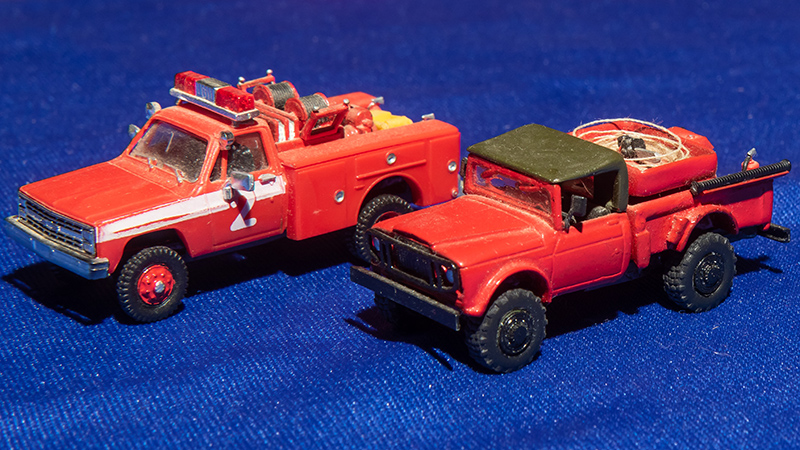 David Copeland had this Chevrolet C-30 4WD brush fire truck and Jeep pickup on display at the 2018 East Coast Meet in W. Springfield, Massachusetts. The Chevy is a modified Trident model and the Jeep was built from a Brekina model.