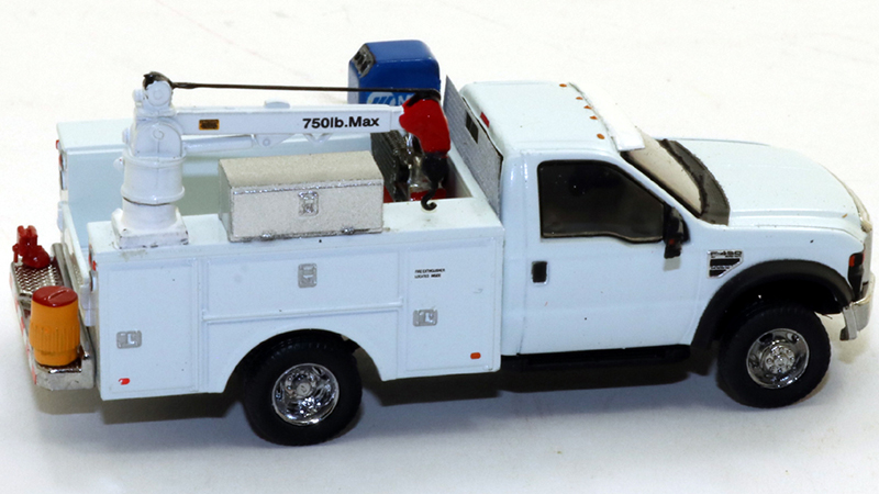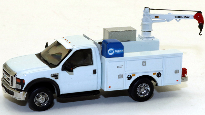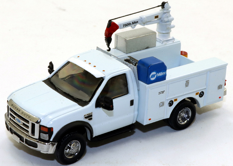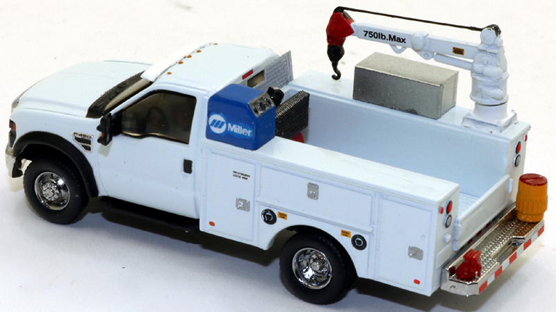 Dan Goins built this field service truck starting with River Point Station's excellent service truck model. Dan added a mechanic's jib crane, tool locker, water cooler, bumper mounted vise, arc welder, air compressor, and sunshade.