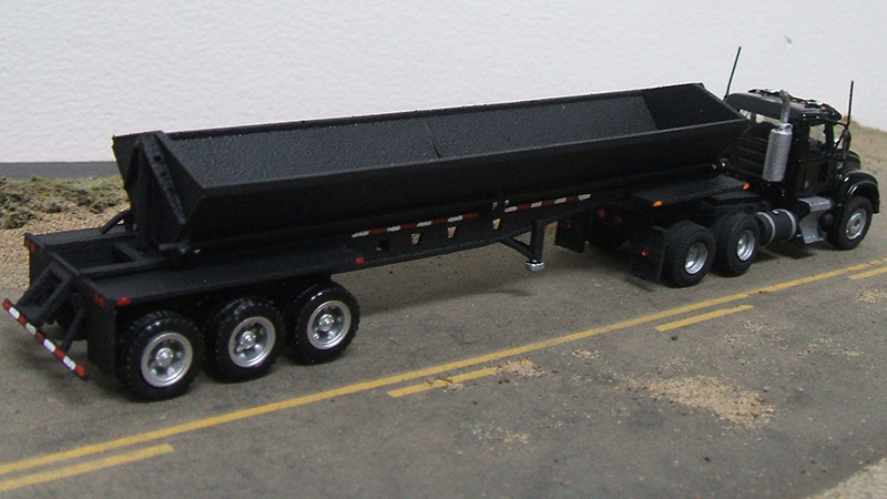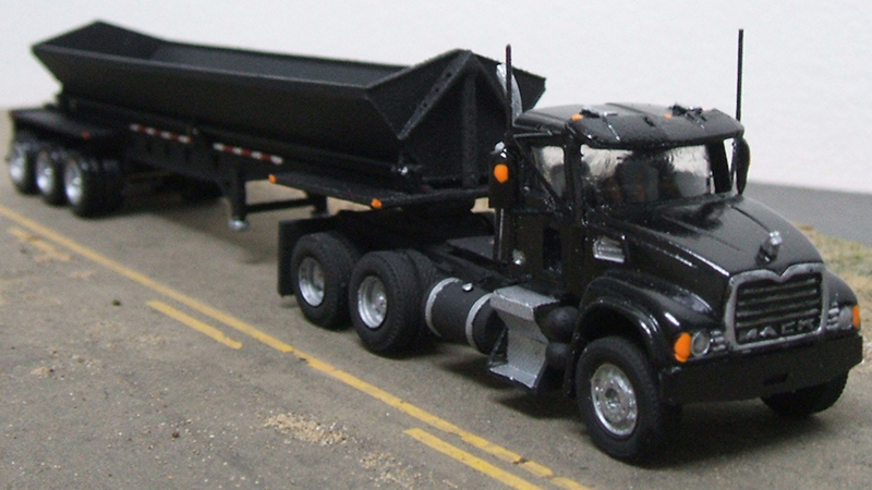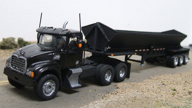 Alain Plante's newest custom painted model is a Mack Granite truck tractor and side dump trailer. The trailer is a new 3d printed side dump trailer from AMK-Design.de on Shapeways.