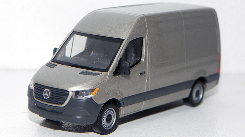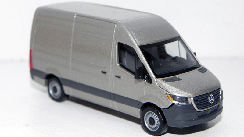 Jim Groeneweg built this Mercedes Sprinter van from a Herpa Minikit. Jim reports he quite likes these kits of detailed parts with “no paint” body parts. In this case, the plastic injected “molded in white” Sprinter van has a light gold pearl applied to it. Jim says he never even realized that this model was the latest version of the Sprinter until it arrived and he noticed the front bumper is quite different from that of the previous Minikit 2017 Sprinter Cube van.