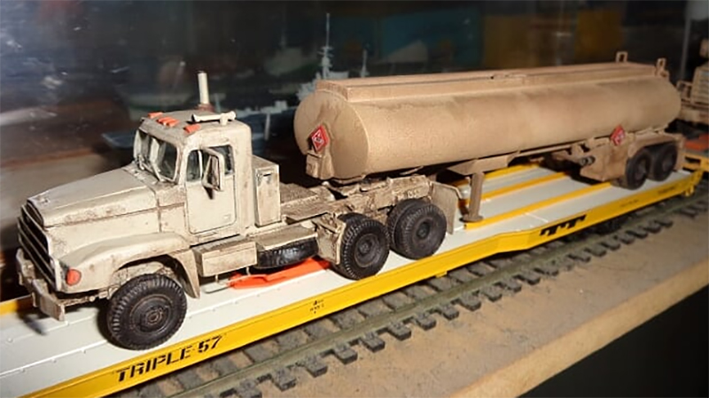 This Freightliner military M916A3 truck tractor and fuel tanker trailer was built by Juan Carlos Piro from a Trident/Kniga resin kit.
