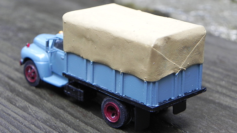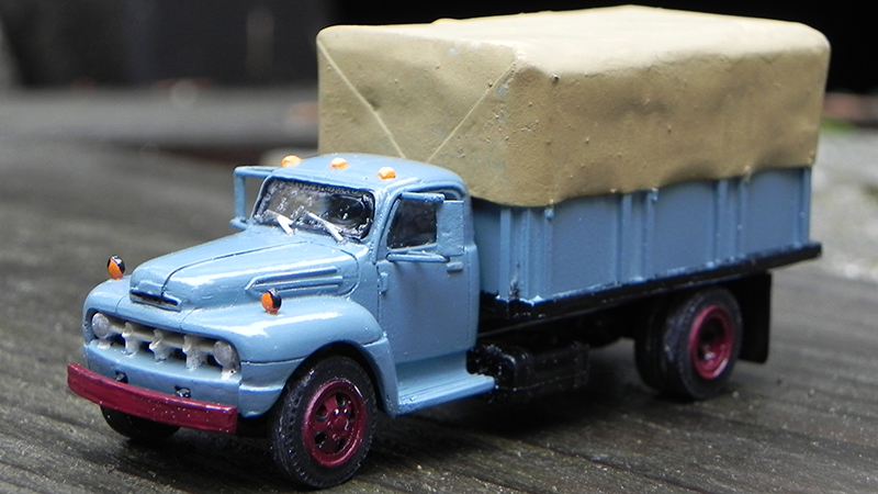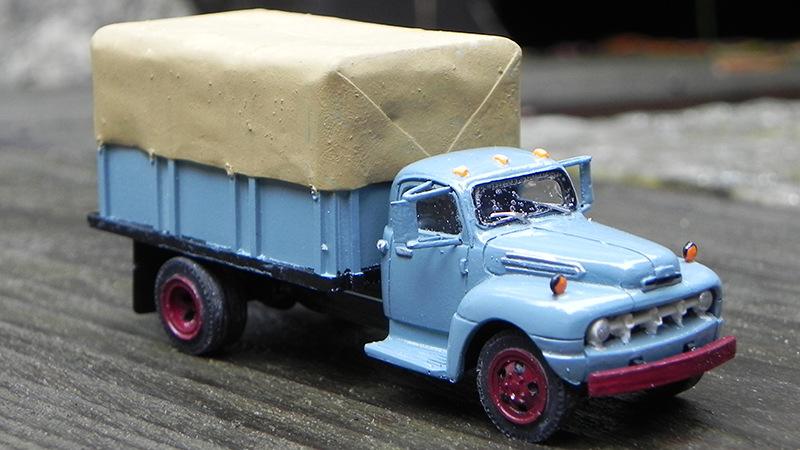 Here is a Sylvan Models '52 Ford F6 that Jim Groeneweg recently completed; this is an “out of the box build” for the most part, only drilling an axle hole and inserting metal axle for rolling wheels. Mud flaps, turn signals and mirrors were added and a coat of automotive authentic Alpine Blue for the main body along with Humbrol for the tarp.