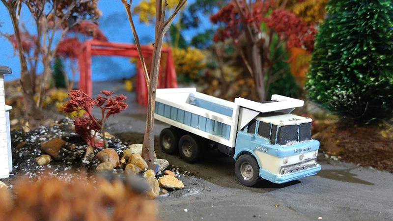 Mark Kurasz built this Ford C dump truck using an old solid resin Magnuson Ford COE cab with a scratchbuilt dump body.