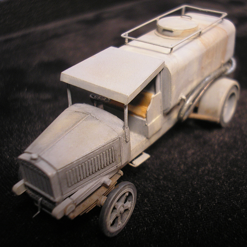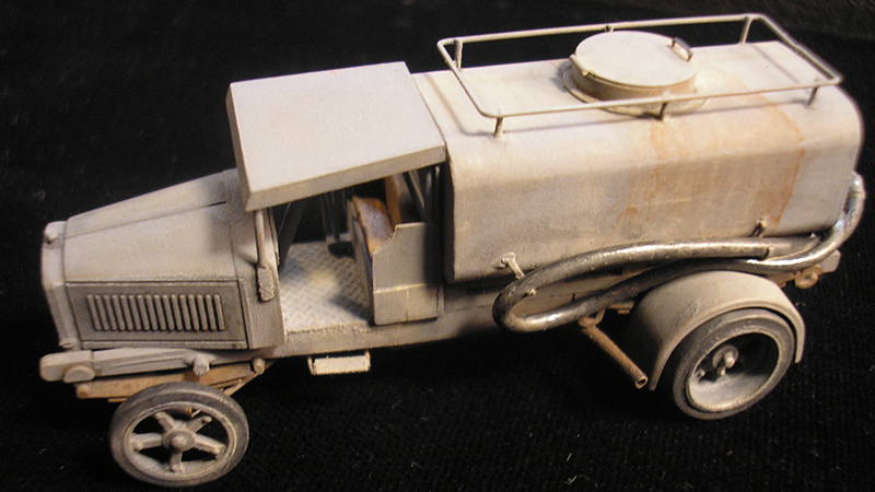 Once again the internet has inspired Rick Hoskinson's modeling efforts. This water bowser is based on a Roskopf 1931 Mercedes Benz truck chassis, hood and cowl and the rest is scratchbuilt. Wheels and tires are 3D prints from eBay. Paint is Model Masters and the weathering was done with washes and pastel powders. Many older vehicles were pressed into military service by the German Army and Air Force to alleviate the strain of vehicle shortages.