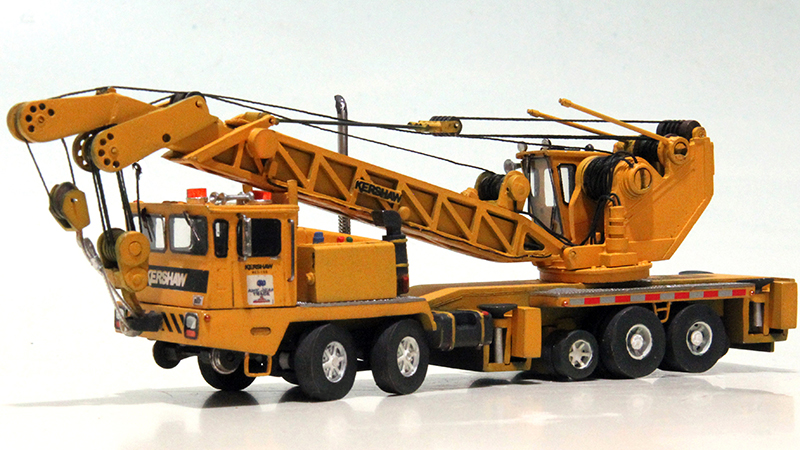 Here's another terrific Custom Finishing Models white metal kit, a 150 ton Kershaw wreck crane that Marcel Devlieger recently completed. Everything works including front steering axles. All pewter parts were filed smooth and true. primered and sub assembled, and then painted with enamel. The photo was taken outdoors on a diorama.